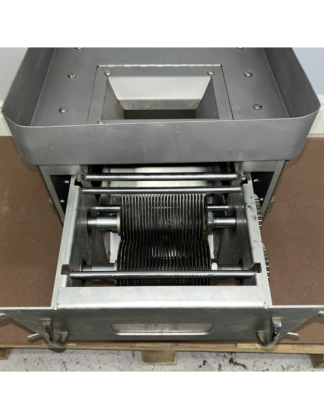 Köttkvarn i rostfritt stål som kan skiva, strimla och tärna kött (120kg/timmen), men kan även användas för att skära grönsaker och frukt.